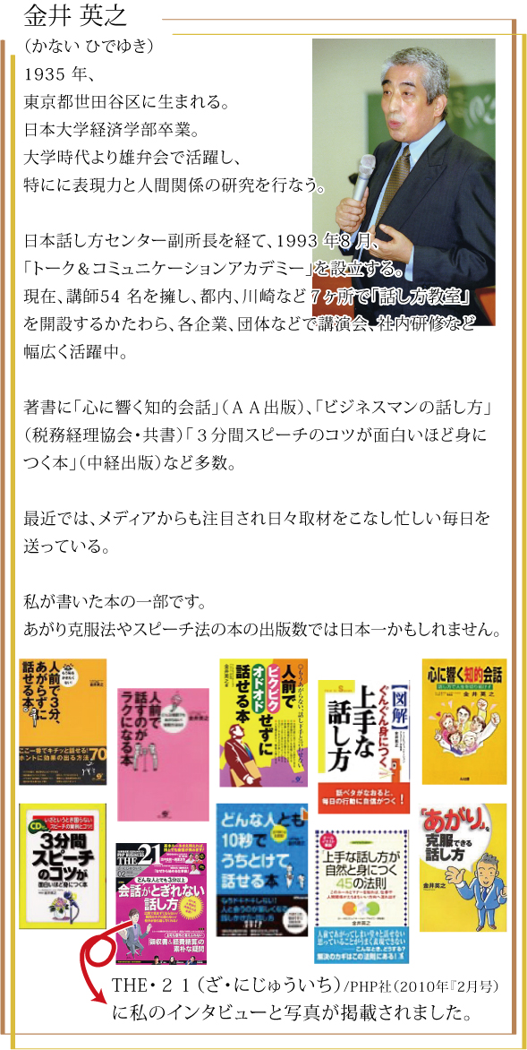 私は、トーク&コミュニケーションという話し方教室の学院長をしており、